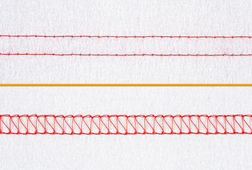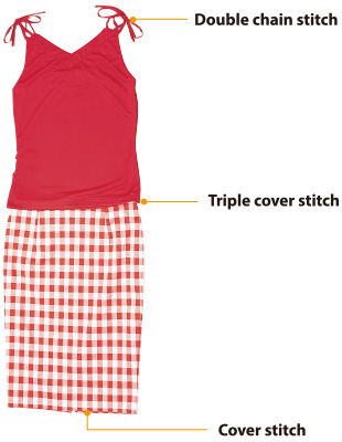 The Triple Cover Stich can be used for topstitching, hemming, and elastic application.Cover stitch