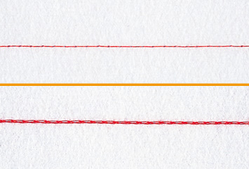 Triple Cover Stitch consists of three rows of straight stitching on the top side of the fabric with the overlock stitch on the underside of the fabric.