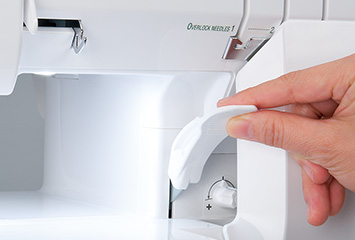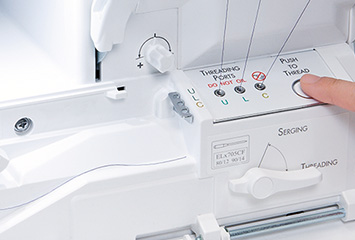 Thread your loopers all at once with the push of a button. A quick gust of air gets your thread through each looper with minimal effort.Convenient Presser Foot Lever