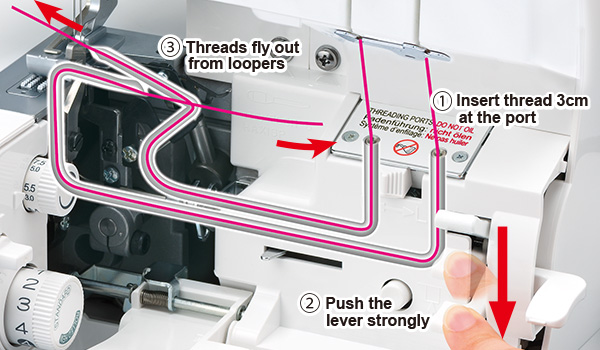 Jet-Air Threading™ threads your machine with the touch of a lever.