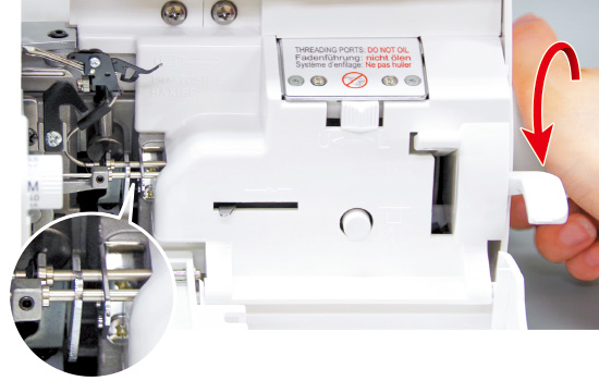 Never worry about tension adjustment again. Enjoy perfectly balanced stitches regardless of the type of fabric you’re using. The built-in stitch fingers actually move with the knife blade, adjusting the seam consecutively with the cutting width. ATD lets you thread your loopers in any order.