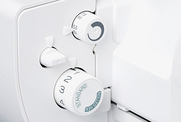 Stitch length can be easily adjusted on the Victory using one dial. This dial includes an Automatic Rolled Hem setting that will retract the built-in stitch width finger for a rolled hem finish.
