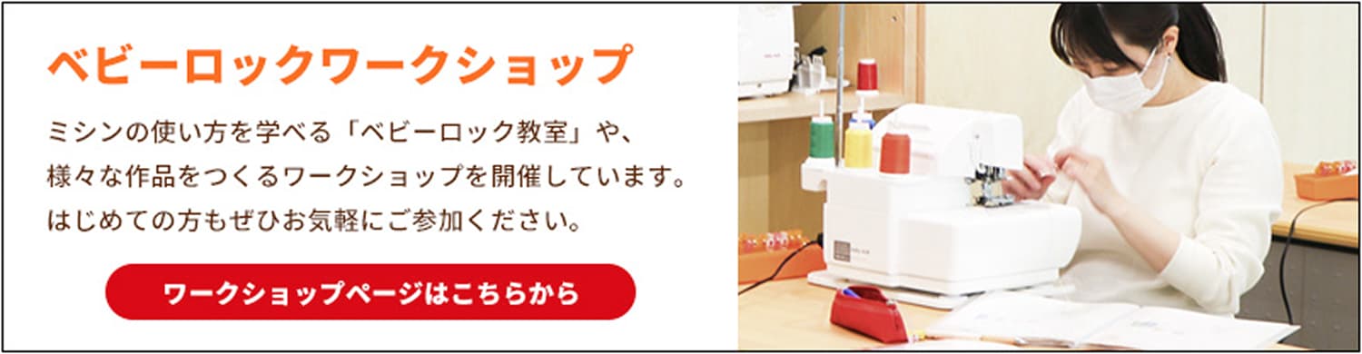 ロックミシンだけで縁かがりと同時に裾のまつり縫いができます。一度で縁かがりとまつり縫いができるので、スピーディーに仕上がります。