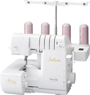 縁かがりと同時にゴムテープを簡単に縫い込むことができます。また、巻きロックに設定し、テグスやフリーウェーブを入れることもできます。