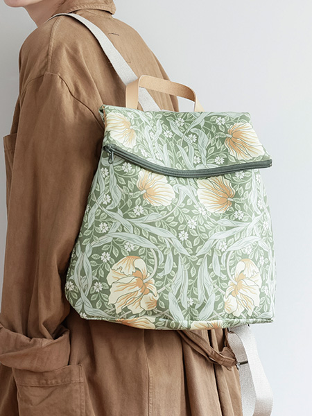 ウィリアム・モリスデザインの人気柄 ‟ピンパーネル”で作ったリュック。