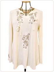 もともとパッチワークが趣味で、ミシンも刺しゅうミシンを使っていたんです。ですから6年前に初めてベビーロックの講習会に参加したときも、刺しゅうをあしらったカットソーをつくるということに興味があって参加したんです。ところが思ったよりも洋服の出来栄えが良くて・・・(笑)。それが縁で、講習会の講師を務めていた山崎幸子先生の教室に通うようになりました。それが洋裁を始めたきっかけですね。