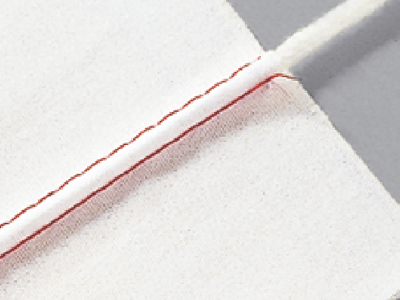 2本針の3mm幅で作ります。お好みの生地でオリジナルのパイピングコードを作ることも。