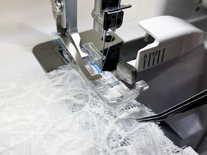 巻きロックはかがり幅が狭くなるため、縫い合わせをするときは縫いはずさないように注意しましょう。透明押えを使用するとより便利です。