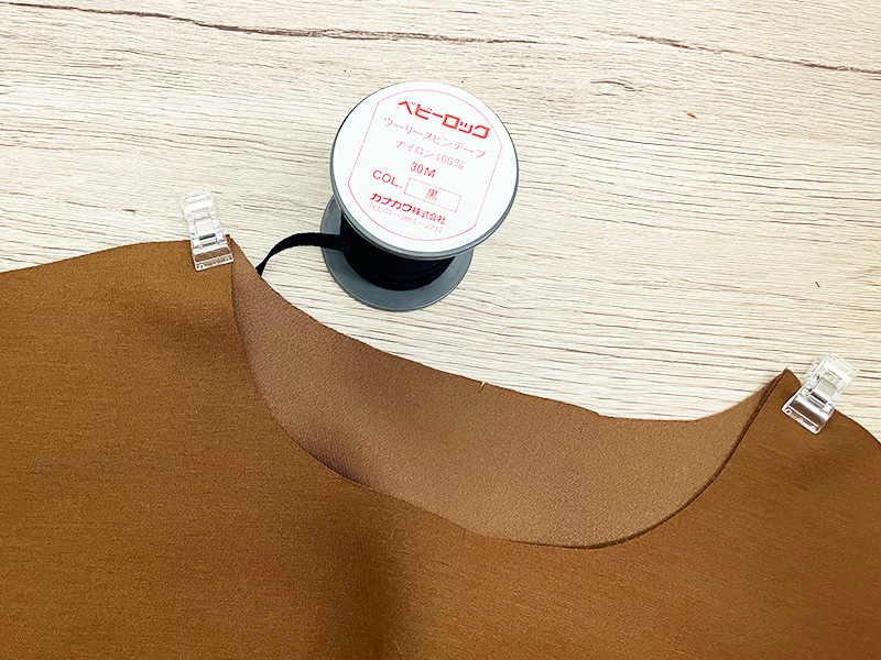 [ POINT 1 ] 肩線にウーリースピンテープを入れながら縫う