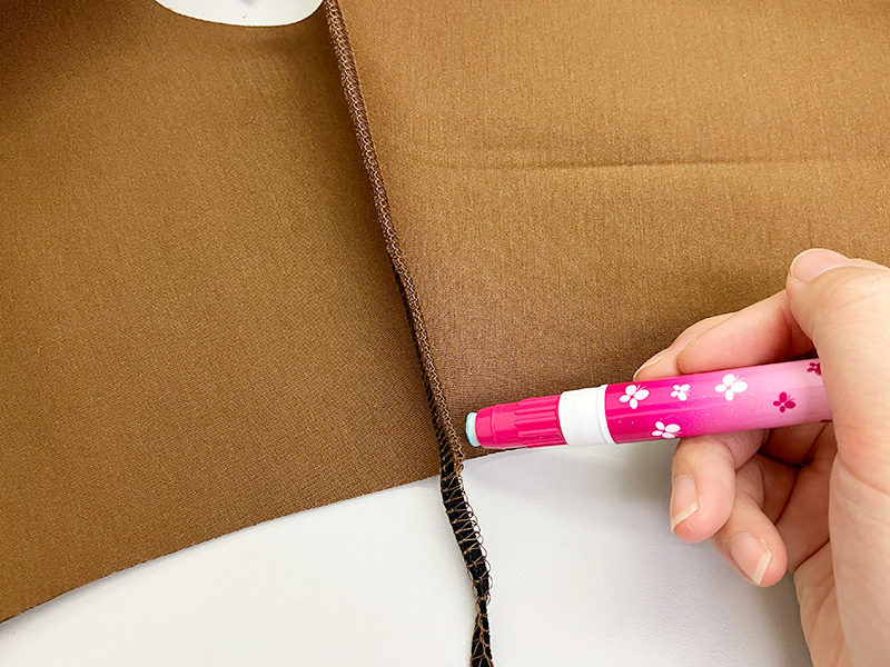 今回は前身頃側にテープを入れますが、好みや作品にあわせて前身頃か後ろ身頃に入れるか決めてくださいね。