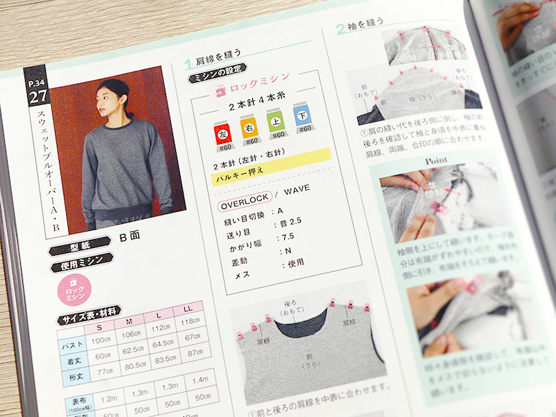 また、本で紹介している「スウェットプルオーバー」は、ホームウェアに近い雰囲気なので、生地を変えると雰囲気が変わってお出かけ着になるのでは?と思ったこともキッカケです。