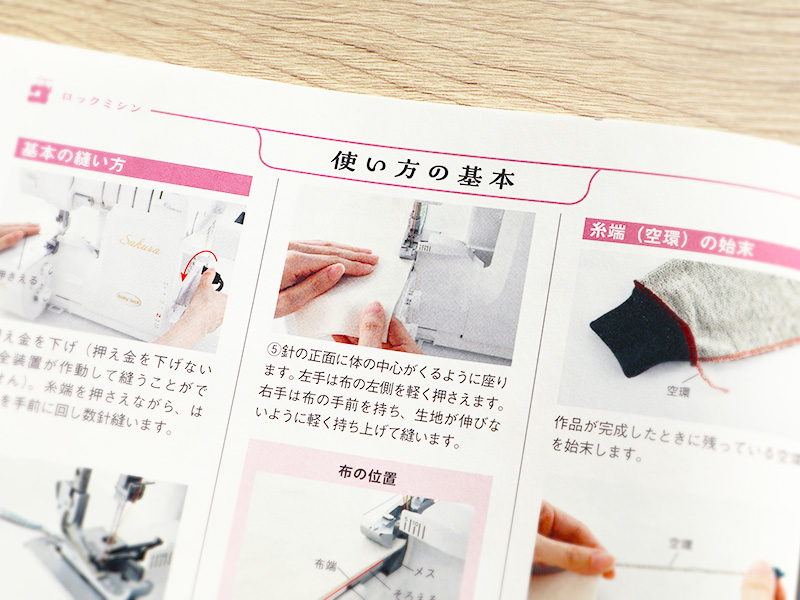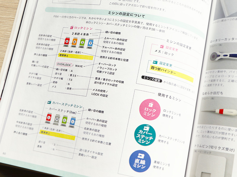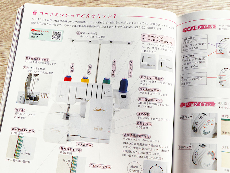 ロックミシンの設定や縫い方の基本もとても細かく載っています。
