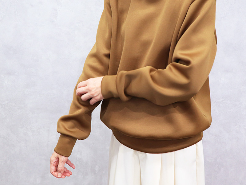 スタッフに着用してもらうと袖が長めのデザインなので、丈感が気になる人は袖を少し短くするのもオススメです。