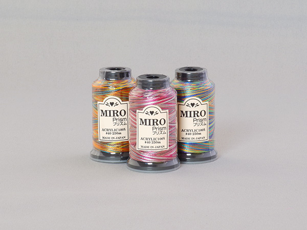 今回使った段染めの飾り糸はオゼキさんのミロプリズムという糸です。糸の太さは40番で250m巻きのちっちゃくてかわいらしい糸です。