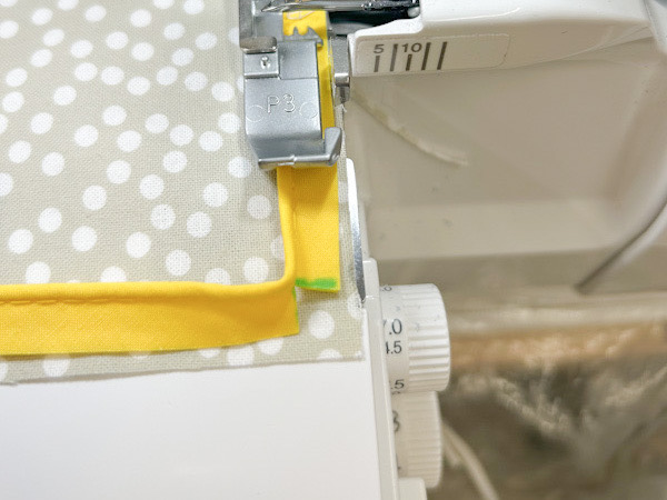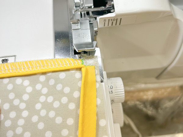 パイピングコードの芯をパイピング押えの溝に合わせて縫っていくだけです。