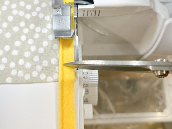 パイピング押えを使って縫い上げたらオリジナルパイピングコードの完成