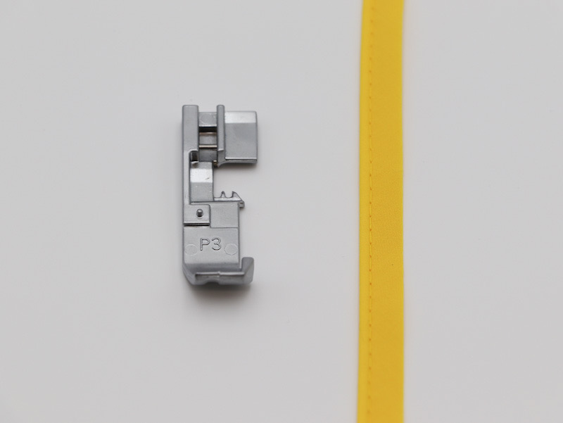 「パイピング押え」には、パイピングコードの芯の太さにより3mm用(P3)と5mm用(P5)があります。