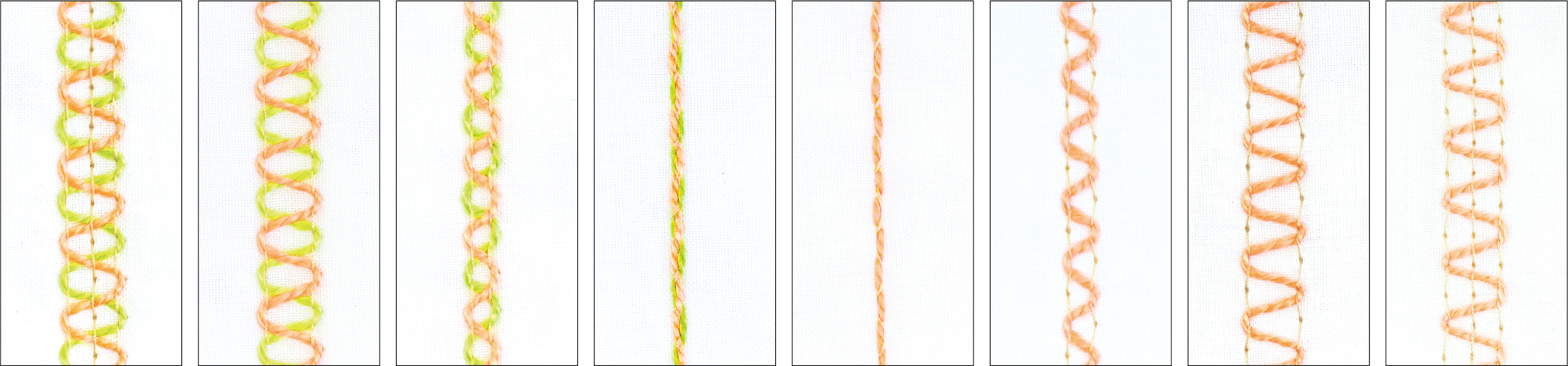 針の位置と糸の本数によって3つのステッチから選ぶことができます。