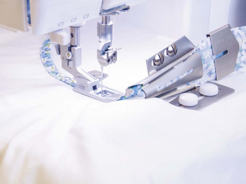 アタッチメントを付けて縫うことで、あえて生地を盛り上がらせピンタック風の仕上がりになります。