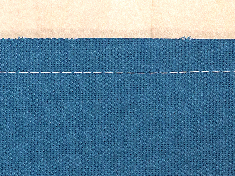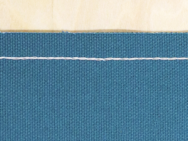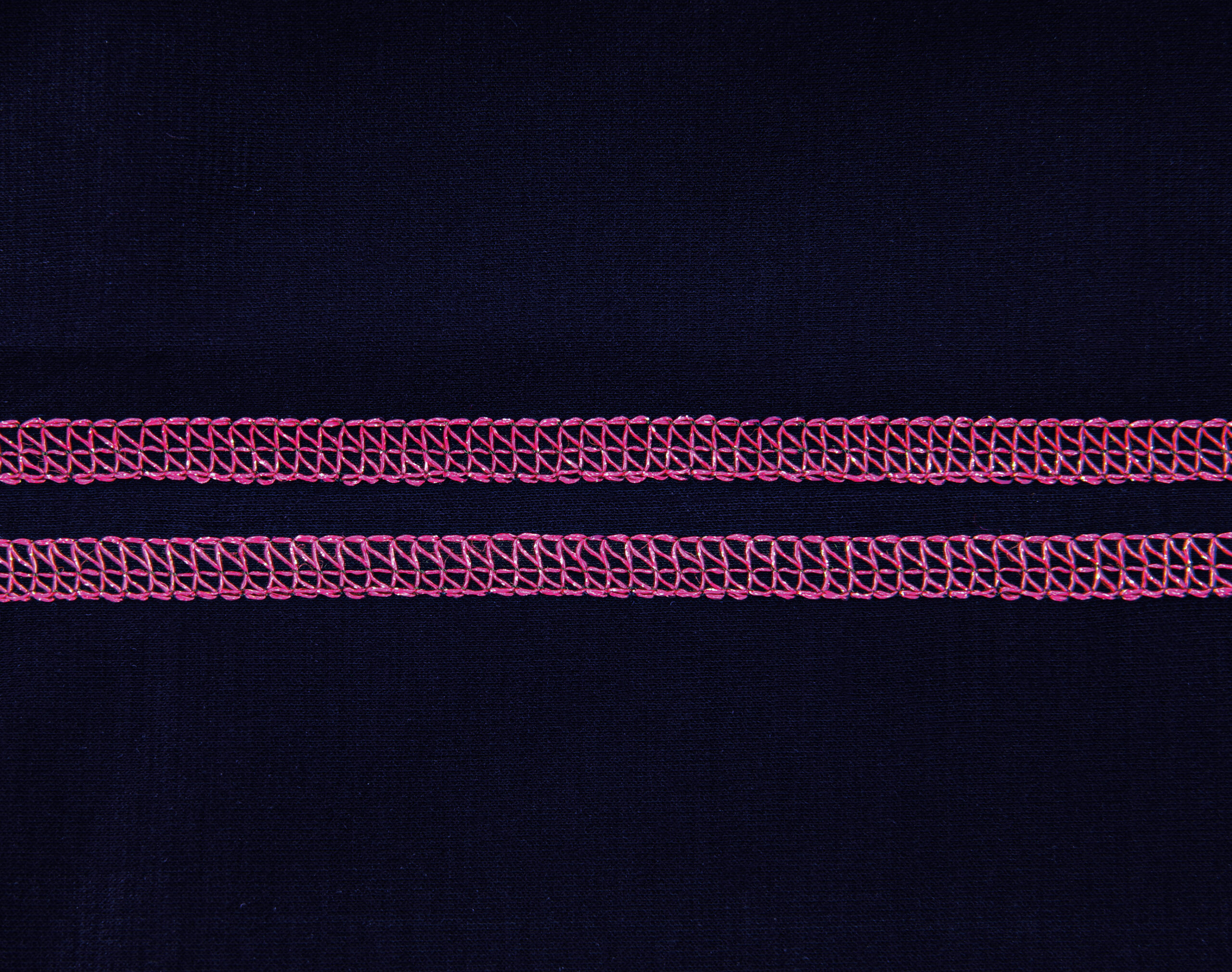 表が1本の直線縫いで、裏が鎖状ループになっている縫い目で丈夫で伸びに強いステッチ。