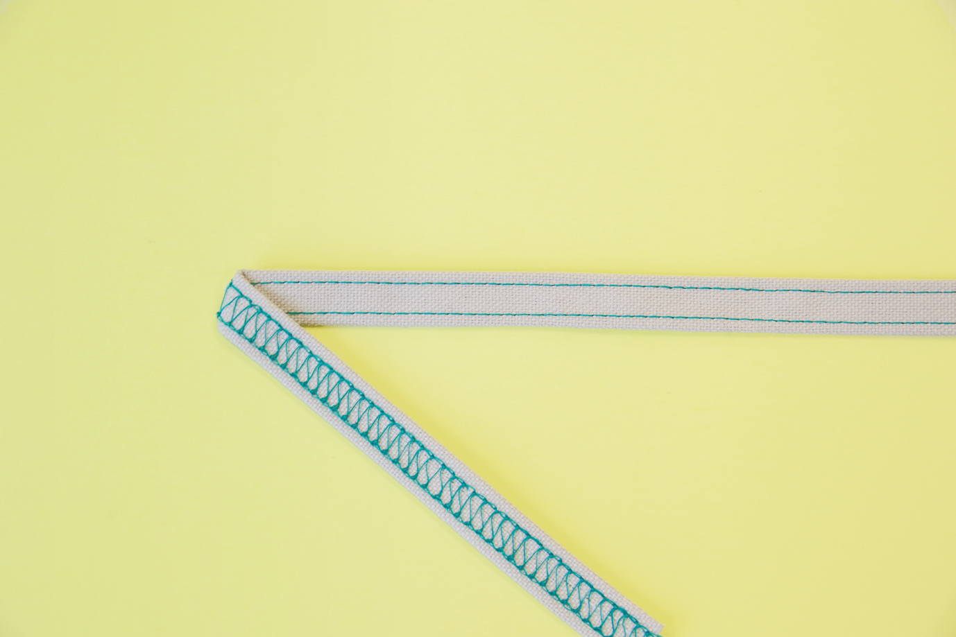 バインダーに生地を通すと両端を折りたたんで縫うことができ、ベルトを通すベルトループが簡単に作れます。