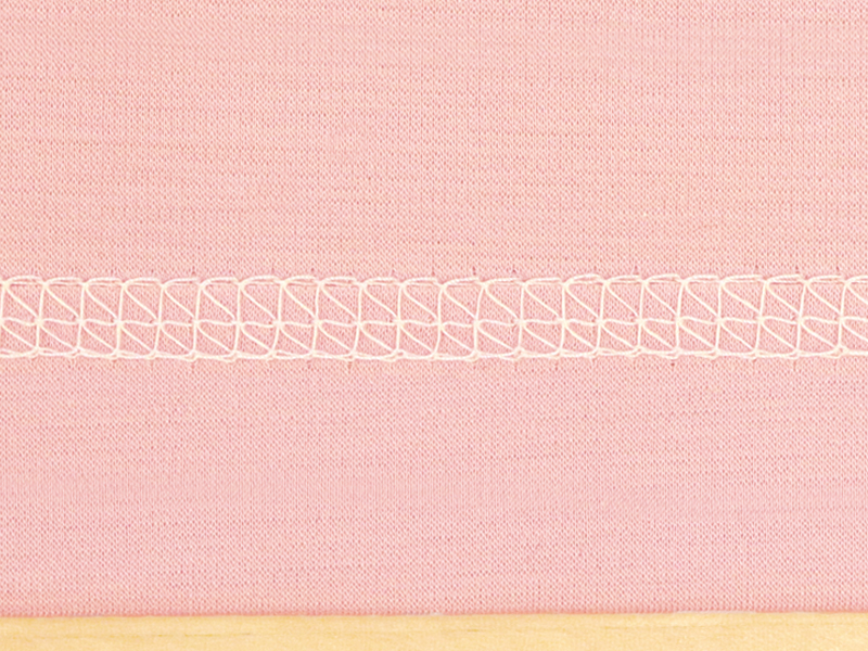 カバーステッチミシンの縫い目は仕上がりがキレイなだけでなく、伸縮性のある「環縫い」なのが特徴です。
