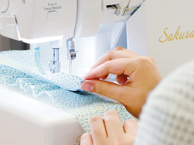 布端のかがり縫いができ、均等にギャザーが寄るので、手で寄せるよりも圧倒的に早くラクに仕上げることができます。