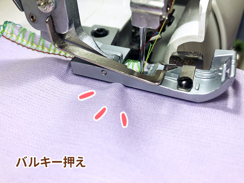 また、もちろん標準押えとバルキー押えでは差動の入り方が変わるので都度試し縫いが必要です。