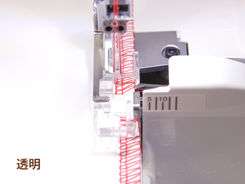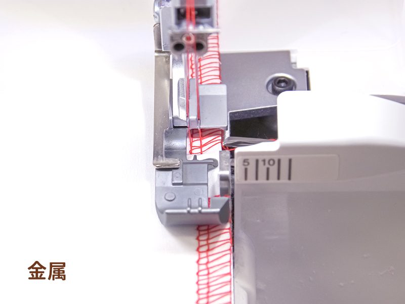 金属の押えと違い、透明なので針落ち位置がとても見やすくなります。
