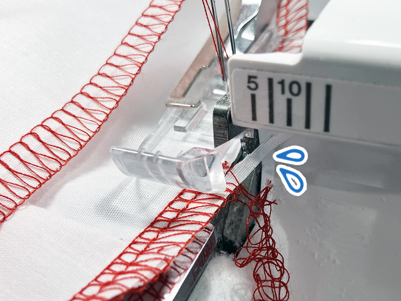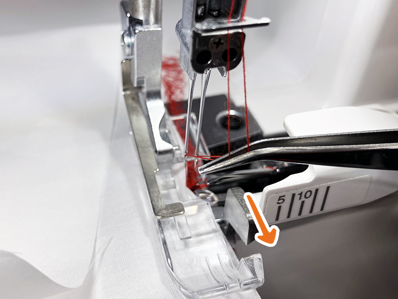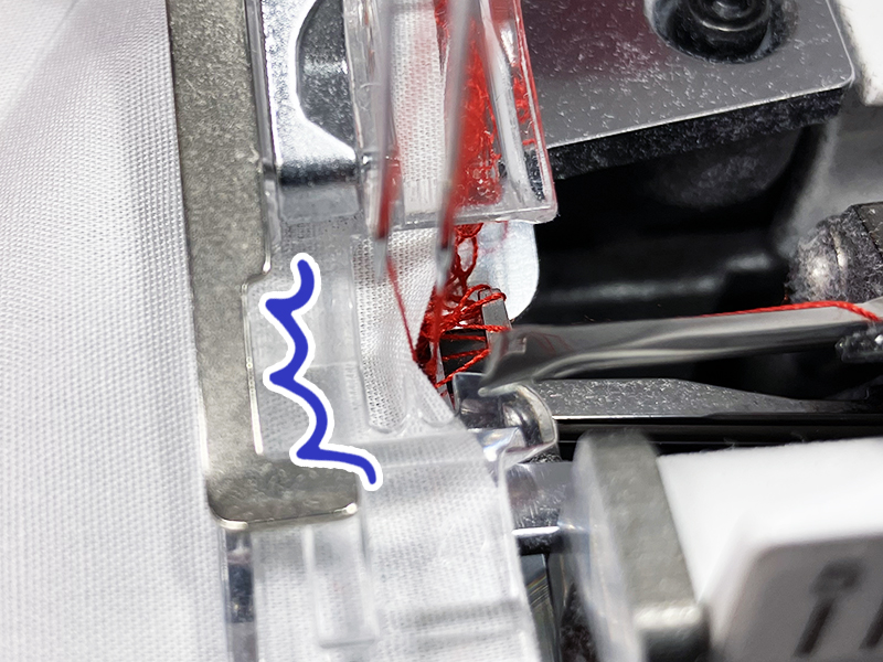 生地を押えの下にセットする時に針糸が邪魔をして、くの字になってしまうことはありませんか?