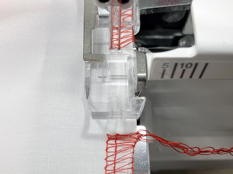 袖口のリブ付け、衿付け、身頃やパンツ、スカートの裾など、筒縫いをキレイに仕上げるポイントを透明押えを使いながら説明していきます。