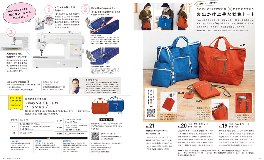 ソーイングデザイナーのかわいきみ子さんに2wayワイドトート・スマートポシェット・パスケースを「極」で作っていただきました。