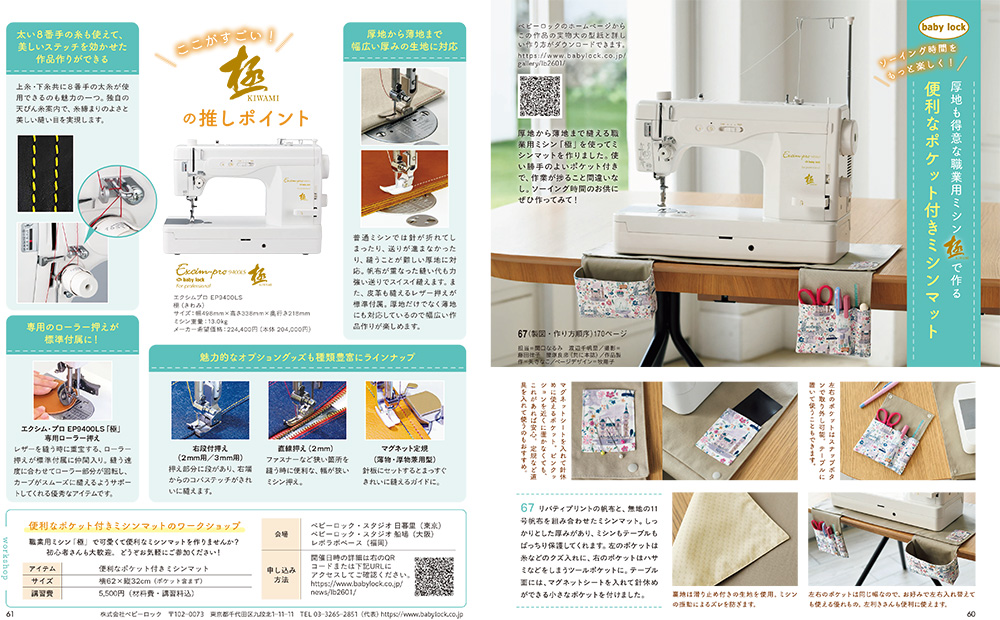 「厚地も得意な職業用ミシン「極」で作る便利なポケット付きミシンマット」