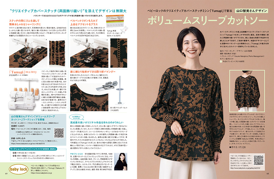 スタイルブックでも活躍中の山口智美さんにクリエイティブカバーステッチミシン「Tumugi」を使ってボリュームスリーブカットソーを作っていただきました。