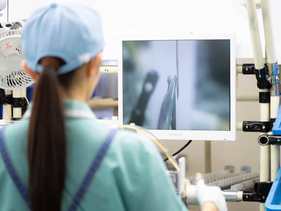 組み立ては精度が要求される作業。拡大モニターに細部を映し出し、動作の滑らかさを確認しながら最適な位置に調整する。