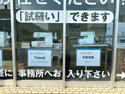 ロックミシンベストセラー人気機種「糸取物語」及び2025年夏に発売され現在注目されている「Tumugi」をどなたでも試縫い体験ができるように試縫いコーナーを設置してあります。