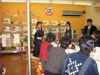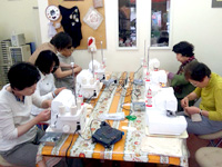 フード付ラブランパーカーの講習風景です。この日は10時半から始めて12時前には終わりました。今回の参加者の方は一人を除きまだロックミシンを持っていない方たちでした。裁断済みだったので短時間で完成して皆さん驚いていました。