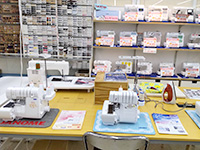 ロックミシンはもちろん、家庭用・職業用ミシンを取り扱っています。展示機で試縫いもできますのでお気軽にお尋ねください。ロックミシンを使ったワークショップも開催していますのでぜひご参加ください。