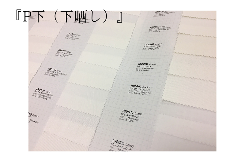 P下とは、染色・プリント用に処理された、無加工・無染色の布生地のことです。