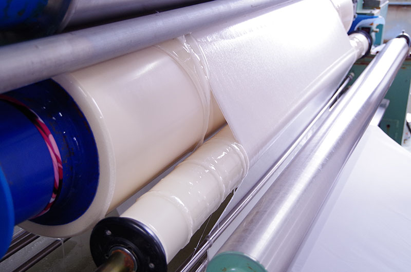 ローラーで圧力をかけることで、全体に糊が浸透していきます。