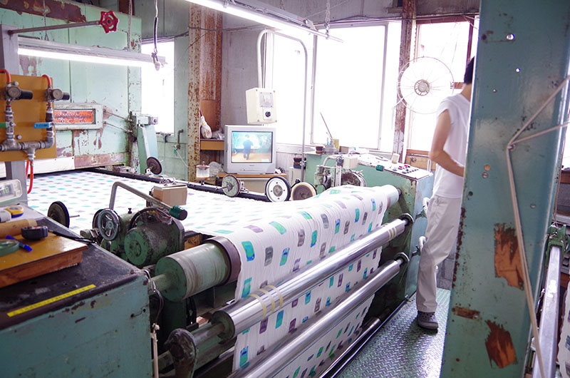 ※写真に写っている生地の柄は工場関係者のデータです。許可を得て撮影しています。