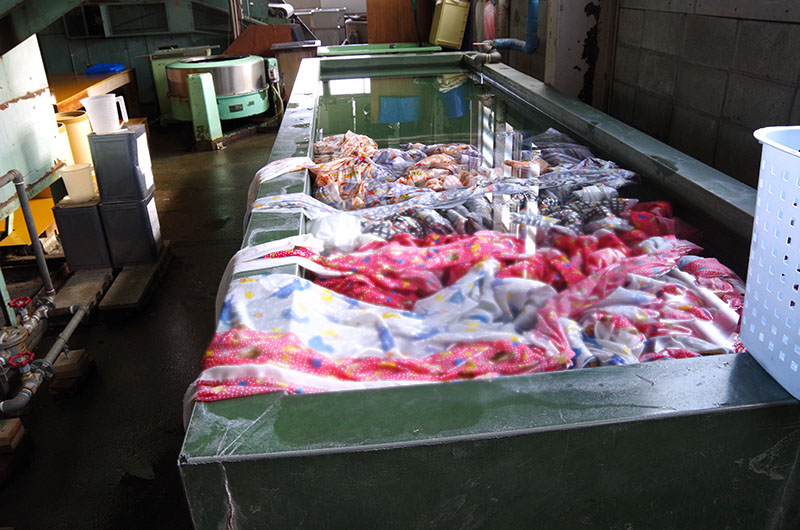 水洗の工程で、定着しきらなかったインクを落とし、堅牢性を高めます。