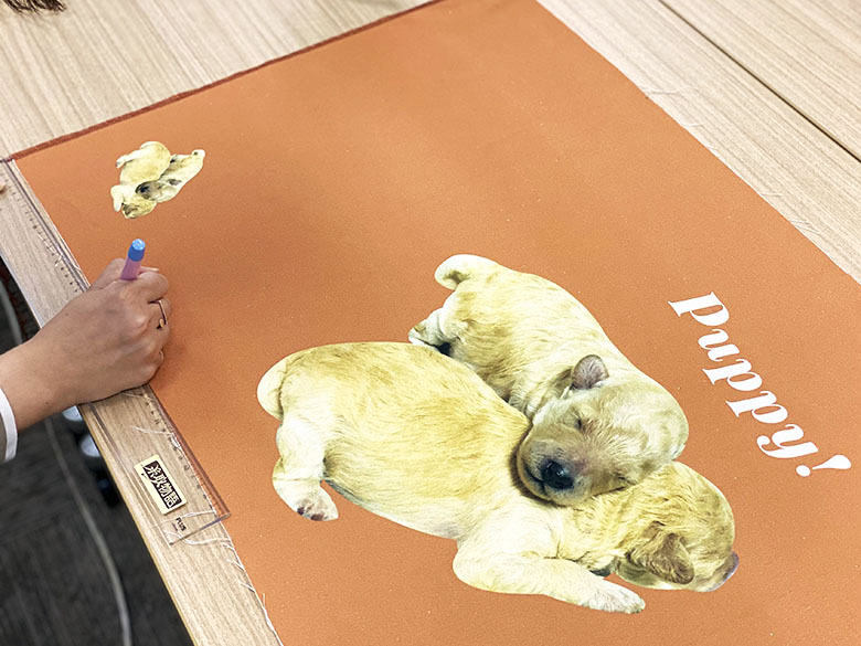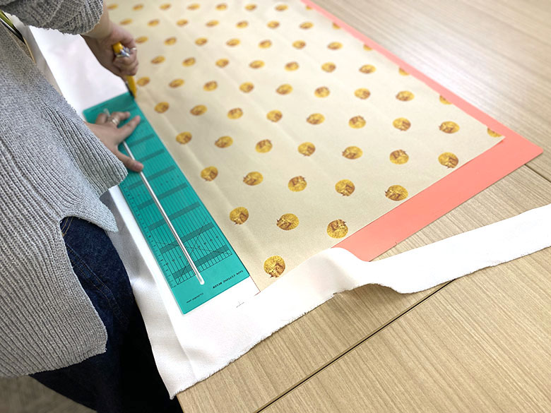 プリント生地を余白から切り出す際は、なるべく真っすぐを意識してカットしましょう。