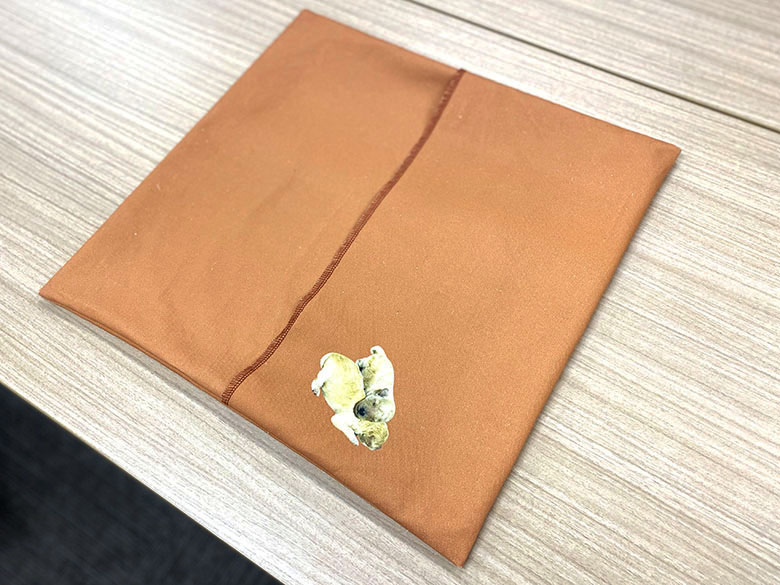 畳んだ状態で、柄が真ん中に合っているか、中身をめくりながら確認しましょう。
