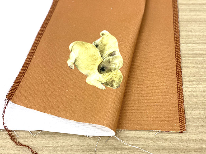 クッションカバーは、まず両端の短辺から端を処理していきます。