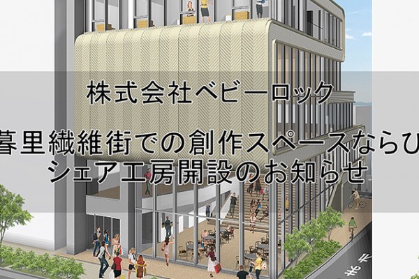 株式会社ベビーロック(本社:東京都千代田区、代表取締役:廣方晋、以下「ベビーロック」)は、荒川区が日暮里繊維街において 2020 年 12 月中旬に開設する「(仮称)荒川区立日暮里地域活性化施設」(以下「活性化施設」)内での、創作スペースならびにシェア工房(以下「工房スペース」)の整備・運営事業者に選定されました。これによりベビーロックは、活性化施設のオープンと同時に、同施設内でファッション系のものづくりに特化した工房スペースを開設いたします。活性化施設は、荒川区が日暮里地域の新たなシンボルとして開設するものです。活性化施設内には工房スペース、ファッション関連のインキュベーション施設および創業支援カフェが設置されるほか、地域の拠点としての区民事務所やおもてなしスペース等を備えたコミュニティの場として、日暮里地域の活性化に寄与することを目的にしています。荒川区では、活性化施設内において工…