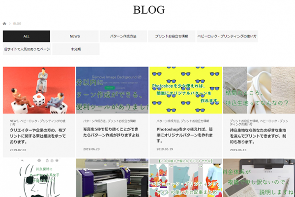 こんにちは。少し遅くなってしまいましたが、7-8月のブログ更新情報をお知らせいたします。この期間は夏季休業があったものの、ブログ記事を計10本をアップいたしました。主なところでは、画像加工やパターン作成に役立ちそうなツールの紹介記事と、海外ファッションブランド関連の記事を2本ずつ。また、布プリントに関する用語集の作成を開始し、9月にアップした分を含め、現在4本になりました。これからどんどん増やし、ベビーロックプリンティングのWebサイトに来れば、布プリントに関することを大抵調べられる。という状態にしたいです。9月以降も、最低週1本以上のペースで、皆様に役立つ情報を届けて行きたいと思っています。【7-8月の記事】(下記の他5本)・2019/7/2 UP クリエイターや企業の方の、布プリントに関する来社相談を承っております。・20…