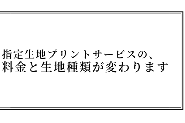 いつもベビーロックプリンティングをご利用いただき、誠にありがとうございます。この度、10月1日をもって、弊社サービスの内「指定生地プリント」につきまして、料金と生地種類の変更を行います。概要を以下に説明いたします。■『指定生地プリントサービスの料金見直し(小ロットチャージの廃止)』弊社側でご用意した生地をお客様に選んでいただき、布生地へお客様オリジナルのプリントをしていただける「指定生地プリント」サービスにつきまして、料金を見直します。従来、プリント料金に加え、「小ロットチャージ」という少量発注に係る手数料をいただいておりましたが、これを廃止いたします。(※持込生地プリントにおいては、引き続き小ロットチャージが適用されます)それに伴い、プリント料金自体は増額いたしますが、小ロットチャージの分を引くと、従来よりも総額が減額となり、よりリーズナブルにご利用いただける…