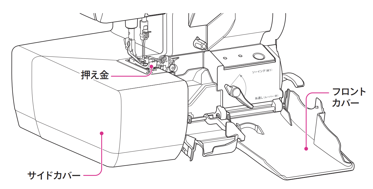 カバー類(フロントカバー、サイドカバー)が開いている、押え金が上がっているとミシンが動きません。