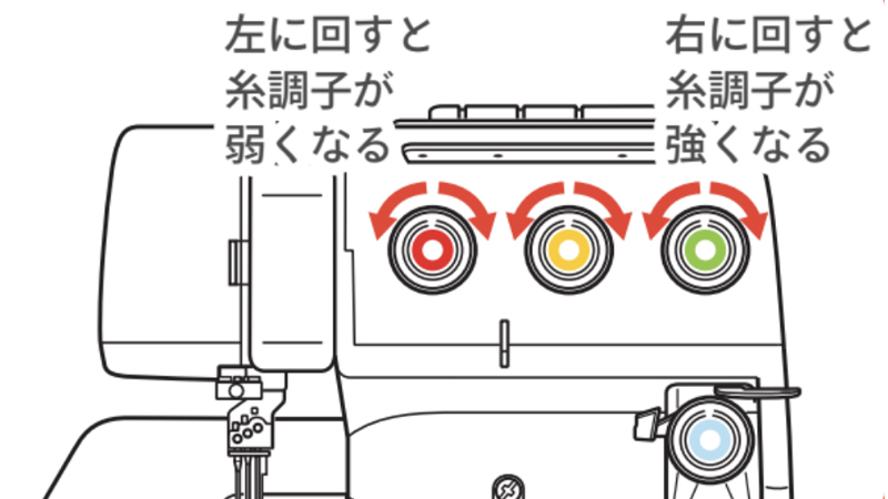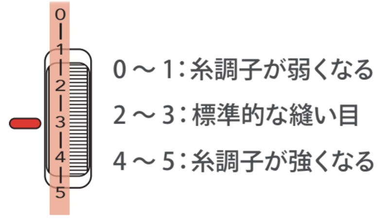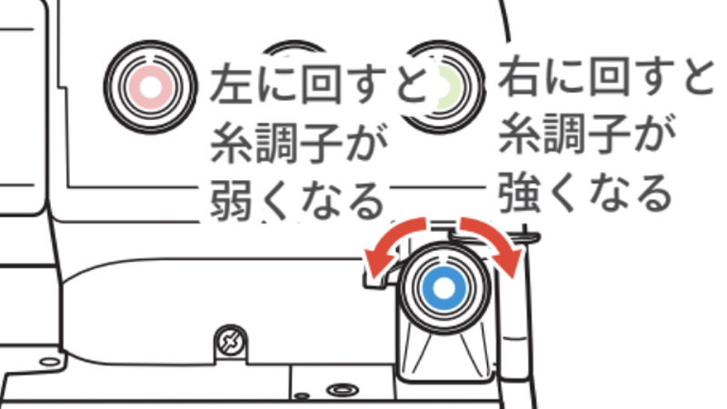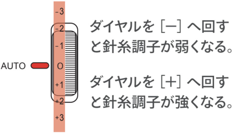 針糸調子微調整ダイヤル:Tumugi(BLC-70TJ)Kanade(BLC-7J)には針糸調子微調整ダイヤルがついています。通常は0を使用します。生地によってはダイヤルを回して縫い目を整えた方が良い場合があります。